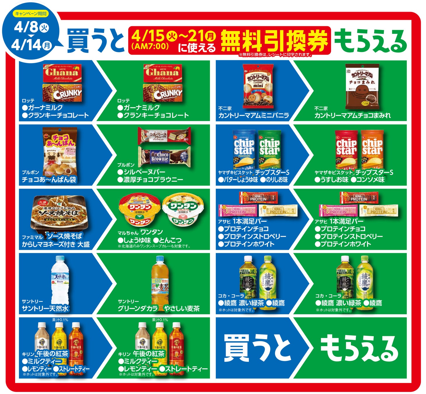 株式会社ファミリーマート(本社:東京都港区、代表取締役社長:細見研介)は、継続して取り組んでいる5つのキーワードの一つである「たのしいおトク」の一環として、期間中、対象商品を1個買うと対象の商品と引き換えられる無料引換券(レシートクーポン)を1枚プレゼントする“春”の「1個買うと、1個もらえる」キャンペーンを2025年4月8日(火)から2025年4月28日(月)まで、全国のファミリーマート約16,300店で開催いたします。