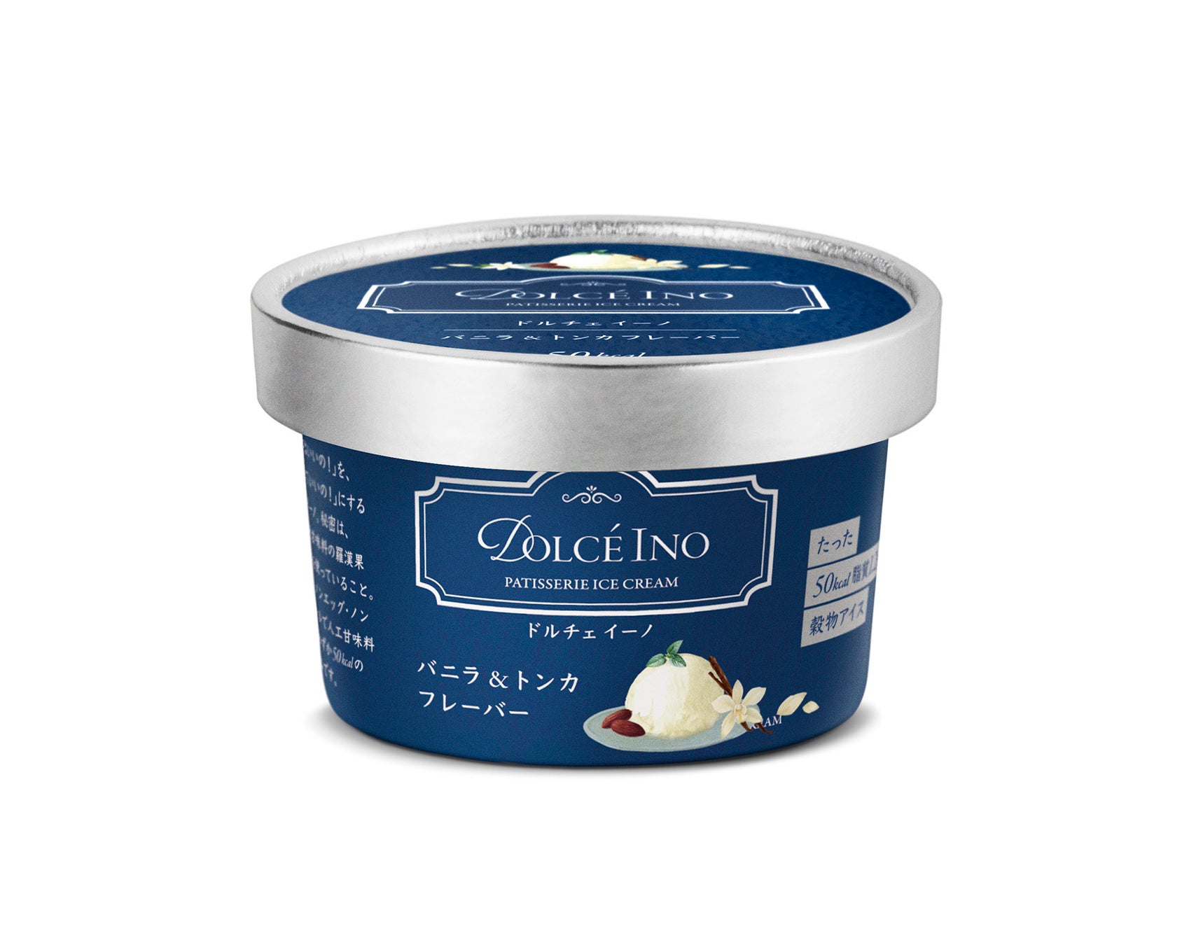 今回Grand Bleu&Co.が開発した低カロリーアイス「Dolce Ino」は、人工甘味料を使わず、大豆と天然甘味料「羅漢果(ラカンカ)」を使うことで、驚異の50kcal、脂質1.2gを実現。アイス史上最少カロリーといえる商品で、誰でも罪悪感なくお召し上がりいただけます。ローカロリーにはこだわりつつも、味や食感も最大限こだわり、スプーンが通りやすく滑らかな舌触りが楽しめる至高のスイーツに仕上げました。全5種類の風味豊かなフレーバーで展開します。