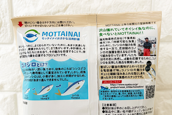パッケージには“MOTTAINAI”のロゴも掲出されていて、おいしく食べながら水産資源の有効活用を応援できるのが嬉しいポイントです。