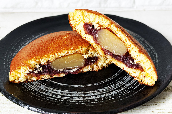 北海道産小豆のつぶあんに、一粒栗がまるごと入った贅沢仕様。