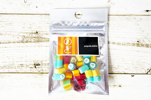 パッケージを開けると、カラフルで小さなキャンディがゴロゴロ。