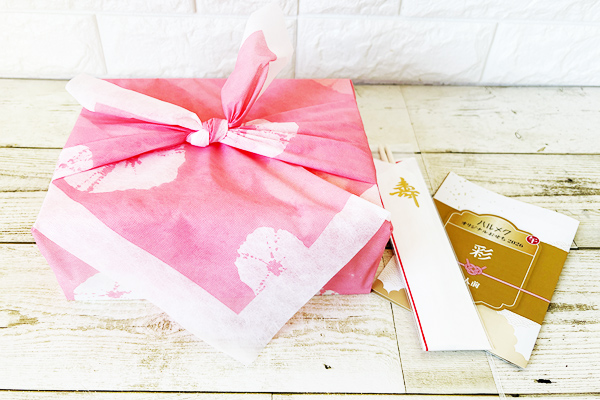 奥ゆかしい桃色の風呂敷を紐解くと、上品な木のお重が姿を現します。