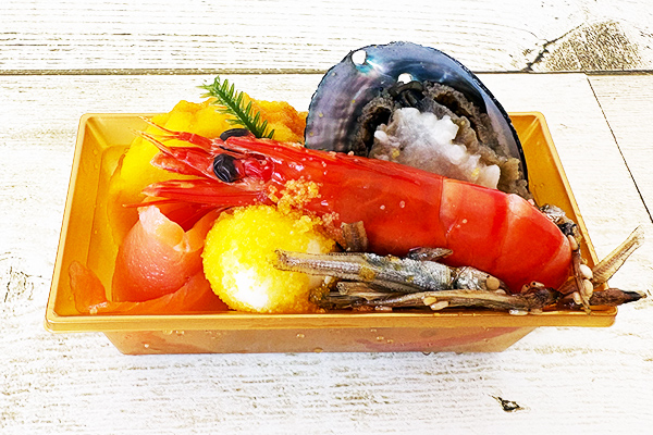 鮑やわらか煮塩麹(横山タカ子さん監修メニュー)、海老旨煮をはじめとしたお正月に嬉しい豪華なメニューに心躍ります。
