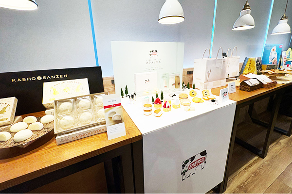 「餅どらやき」や「コルネ」など、こだわりの和洋菓子に加え、ここでしか買えないアイテムが登場。併設する喫茶では、冬はぜんざい、夏は赤福氷などもイートインで楽しめます。