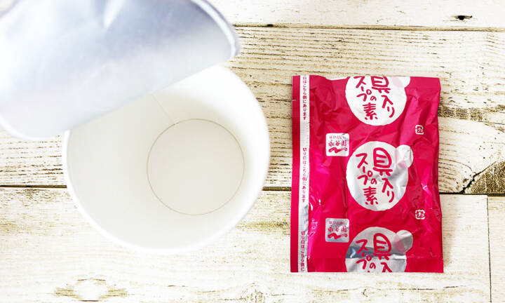 星型かまぼこやしいたけ、パセリが浮かんでいて、見た目にもかわいらしい仕上がり。味はまろやかで、ミルクのコクがしっかり。パンと合わせても、おにぎりのお供にも◎。ほっと一息つきたいときにぴったりの“癒しカップ”です。