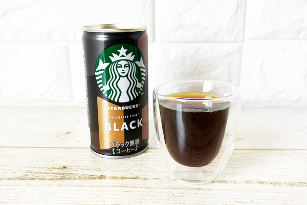 まずはブラックから。グラスに注ぐと、ふわっと香ばしいアロマが立ち上がります。日本のStarbucks RTD用に厳選された高地産アラビカ豆を使用しており、苦み・渋みを抑えながらも香り高く仕上げられているとのこと。