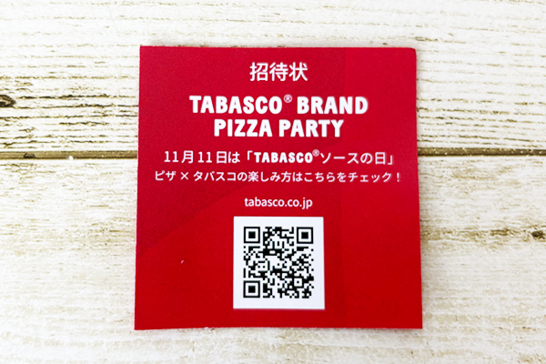 「ピザに、タバスコ®」キャンペーン公式サイトへの招待状も同封されていました!