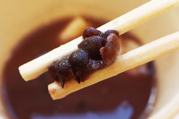 小豆の粒感をしっかり残したぜんざいは、甘すぎず、やさしい風味が広がります。