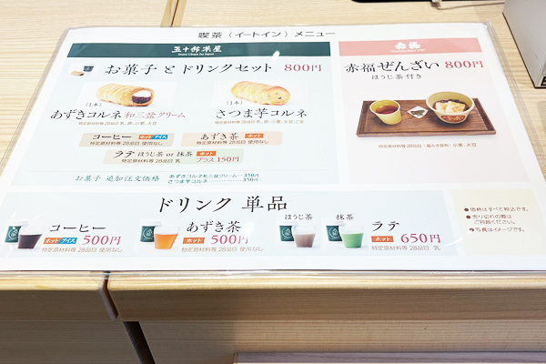 店内では、「赤福ぜんざい」や「あずきコルネ」「さつま芋コルネ」などの和スイーツに加え、抹茶ラテ・ほうじ茶ラテ・あずき茶など、和の香りを楽しめるドリンクも提供されます。