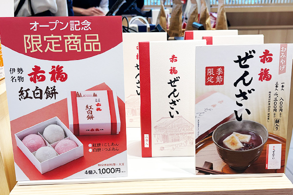 オープンを記念して、赤福の「紅白餅」を数量限定で販売。